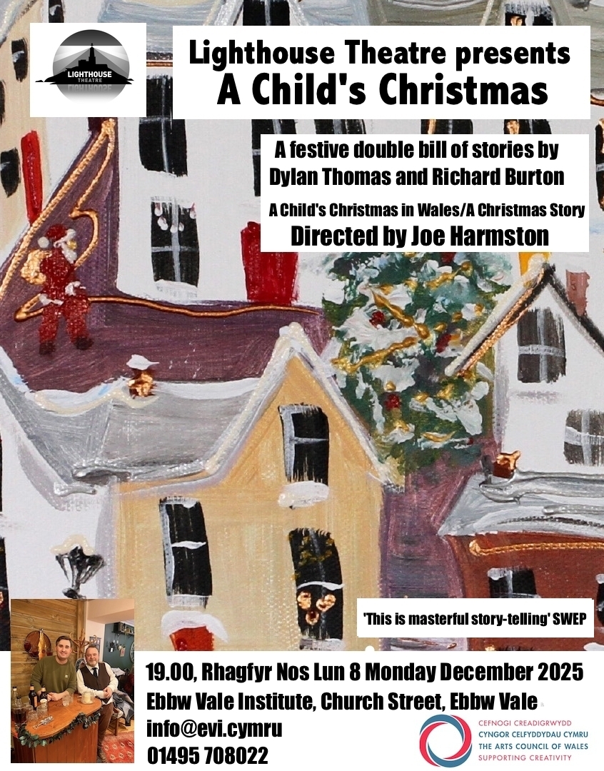 Lighthouse Theatre returns to EVI with two festive favourites: Dylan Thomas’ A Child’s Christmas in Wales and Richard Burton’s A Christmas Story—a double bill of two wonderful Christmas tales by two famous Welshmen! Join us for the perfect evening of festive storytelling. Heart-warming, funny, and cosy—just as Christmas should be!