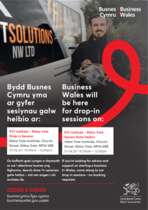Business Wales / Busnes Cymru are holding drop-in sessions for anyone looking for advice and support on starting a business in Wales. They’ll be here from 10am to 12pm. Drop in!