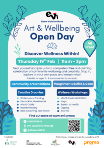 Running from 11am–3pm on Thursday 19th Feb, our free EVI Art & Wellbeing Open Day is a relaxed, welcoming celebration of community wellness and creativity, with lots happening throughout the day.