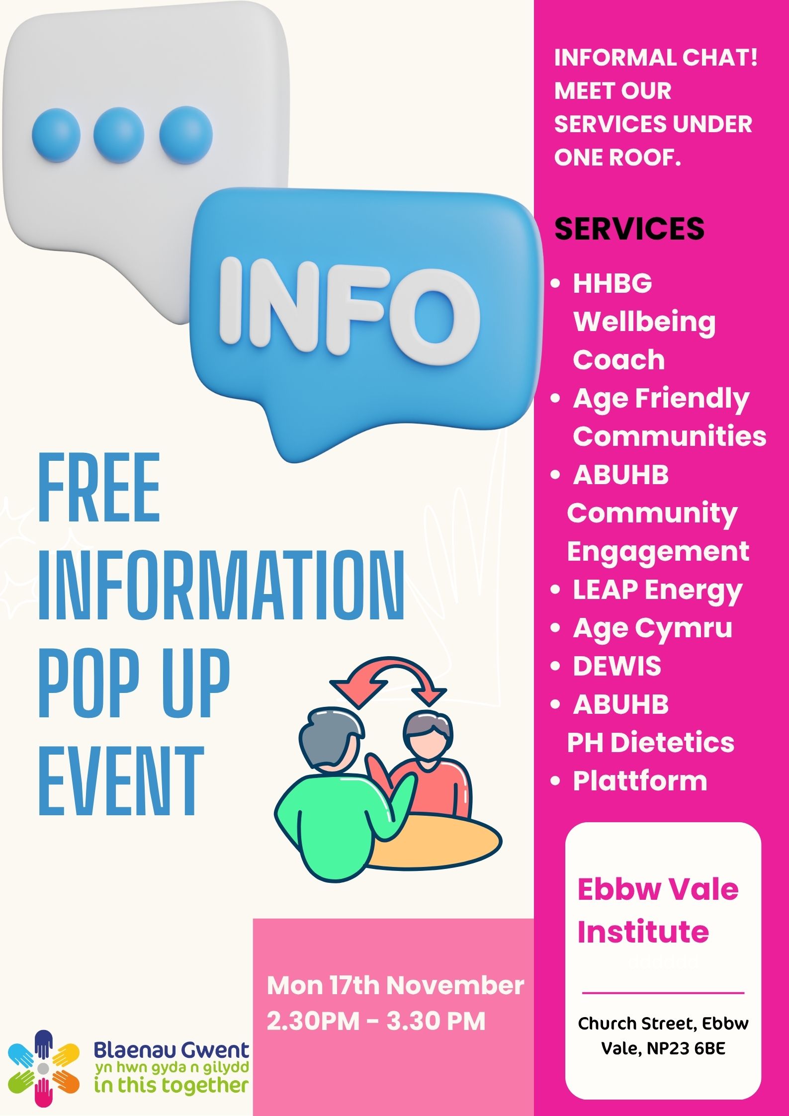 With so many services available, sometimes it’s hard to know what support is available and right for you. The Information Pop Up Event at EVI let’s you discover all the tools that are on your doorstep and helps you learn more about these services – with a cuppa and slice of cake of course!