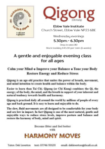 Join Dek Leverton, a Tai Chi & Qigong teacher for 29 years, in exploring these slow, gently flowing movements which are designed to be comfortable for your body and are low in impact. Qigong is one of the most natural and enjoyable ways to reduce stress levels, improve posture and balance, increase flexibility and restore the natural harmony of your body, mind and spirit. Converting tension into flow.